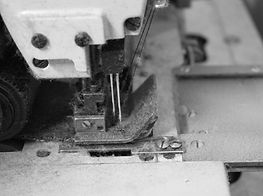 本縫いに取り付けるパイピング用は、専用ミシンを設けて、テープ幅に